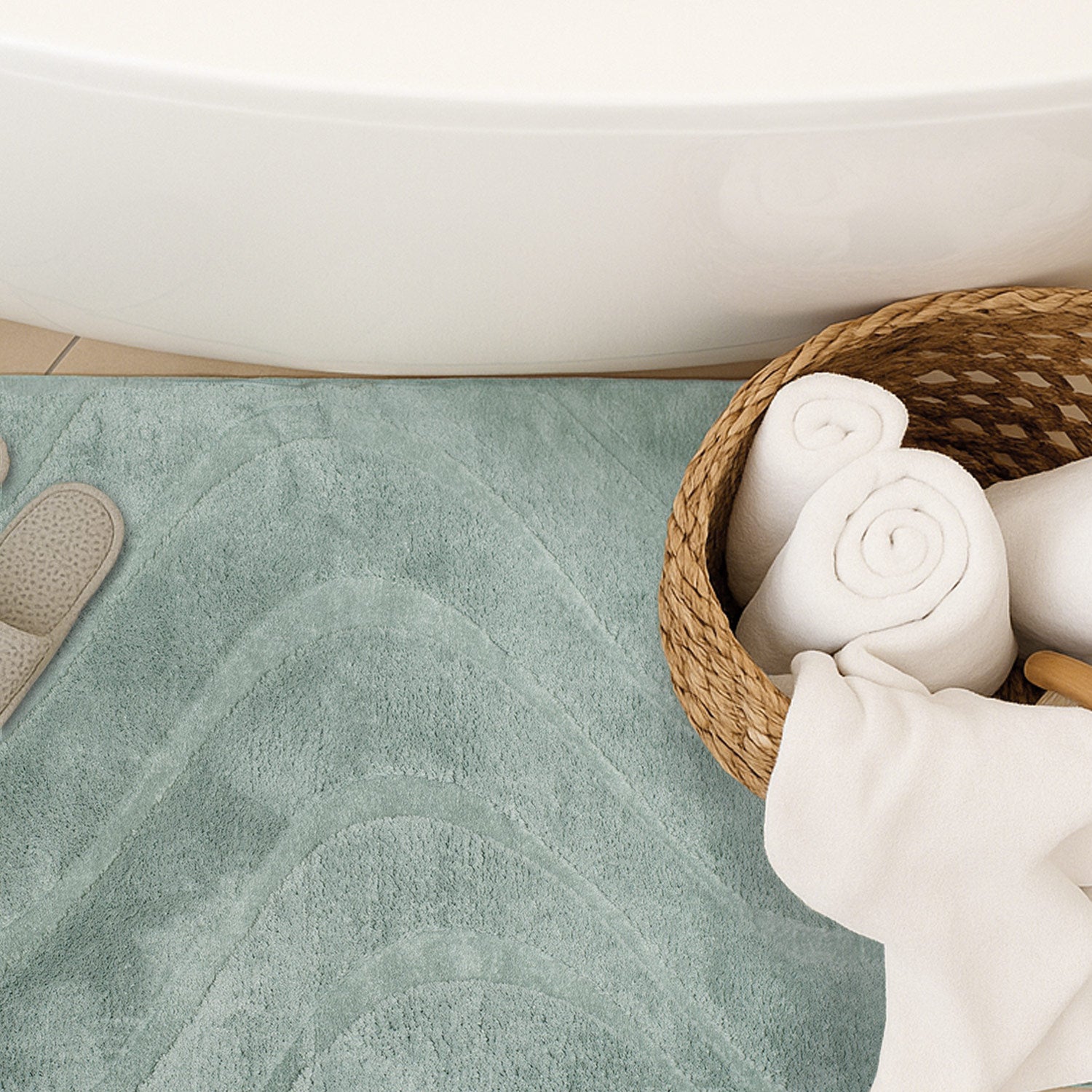 Vågig mjuk badrumsmatta, 400 jadegrön