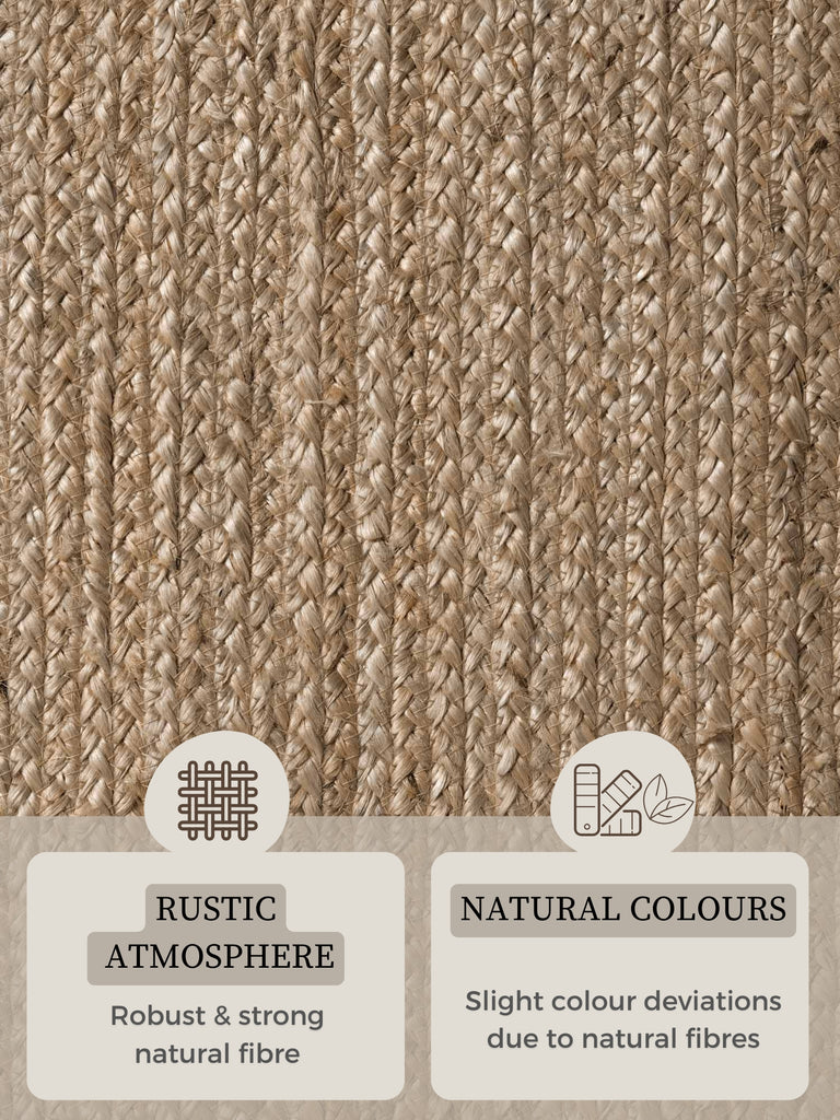 Mattan utstrålar en mysig lantlig atmosfär och är tillverkad av starka naturfibrer. Till en början kan det finnas en lätt, naturlig doft från juten, som snabbt försvinner. Därefter är scenen satt för en matta som kommer att skapa glädje i många år.