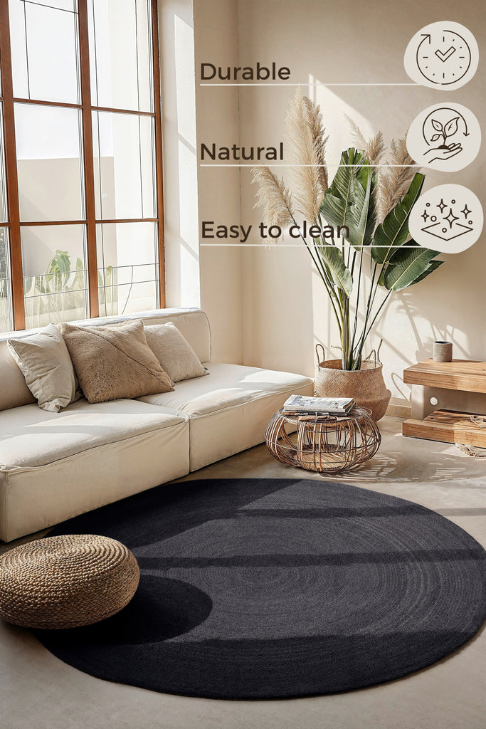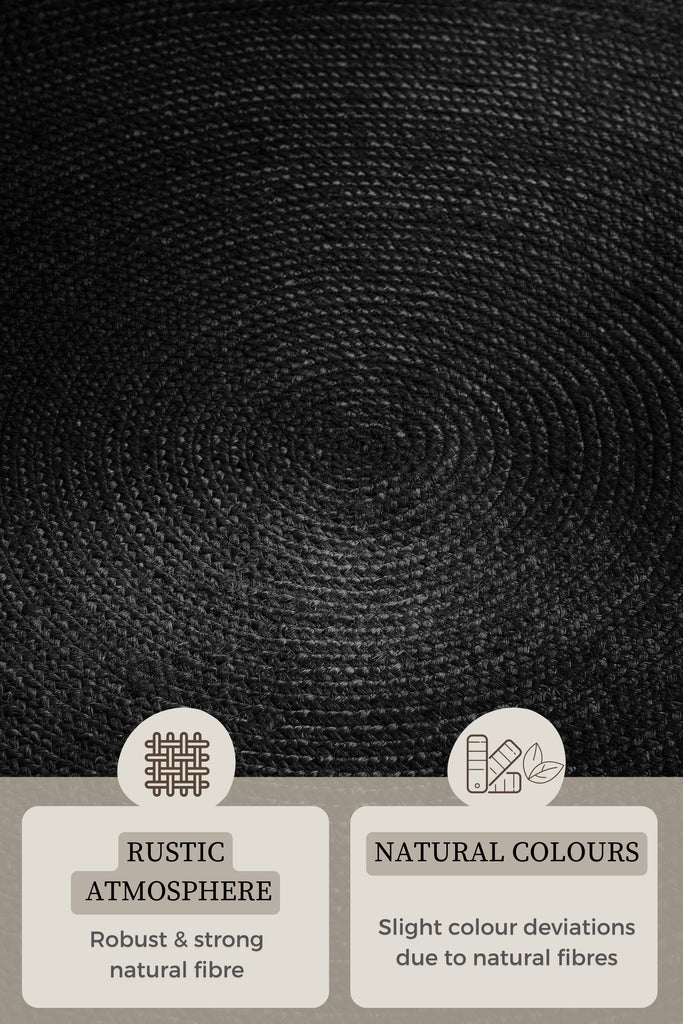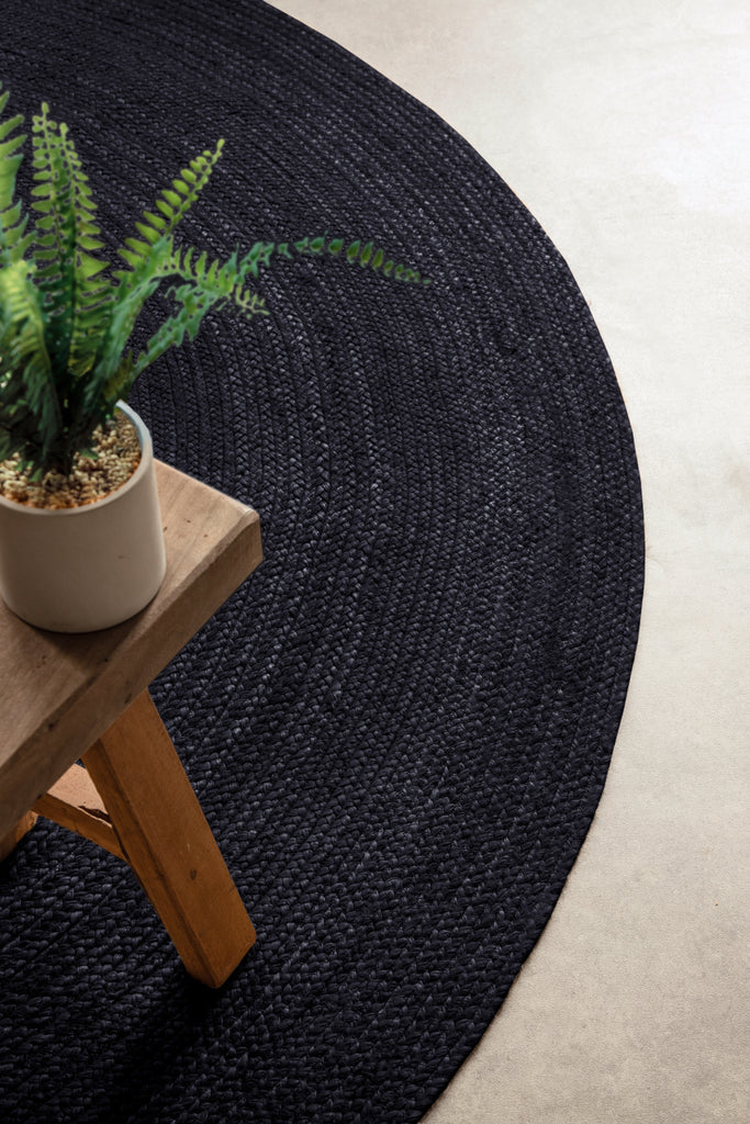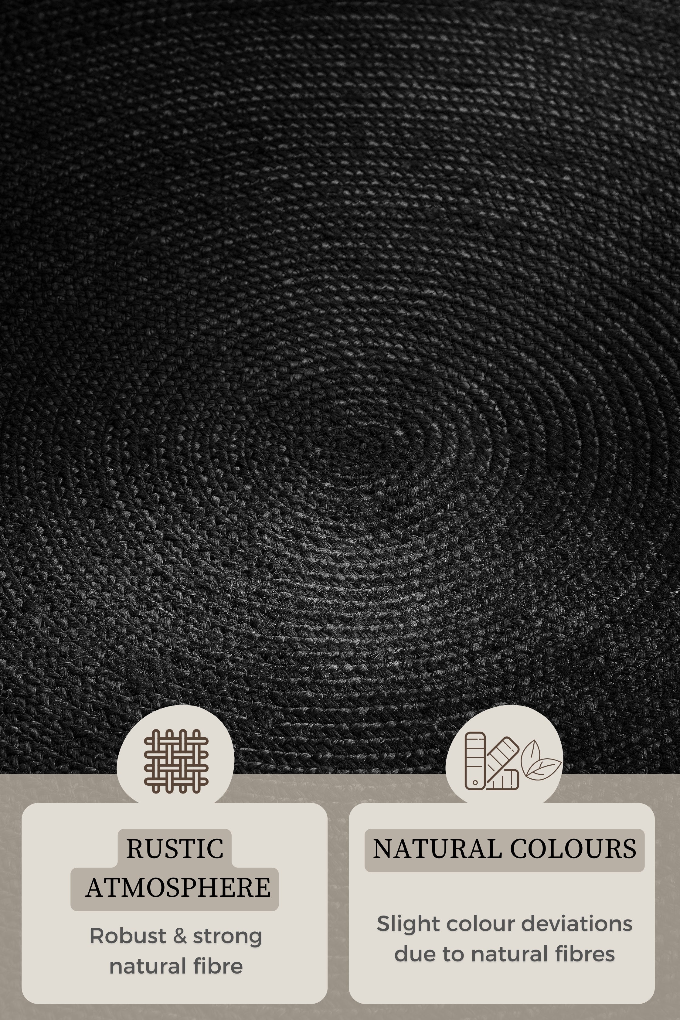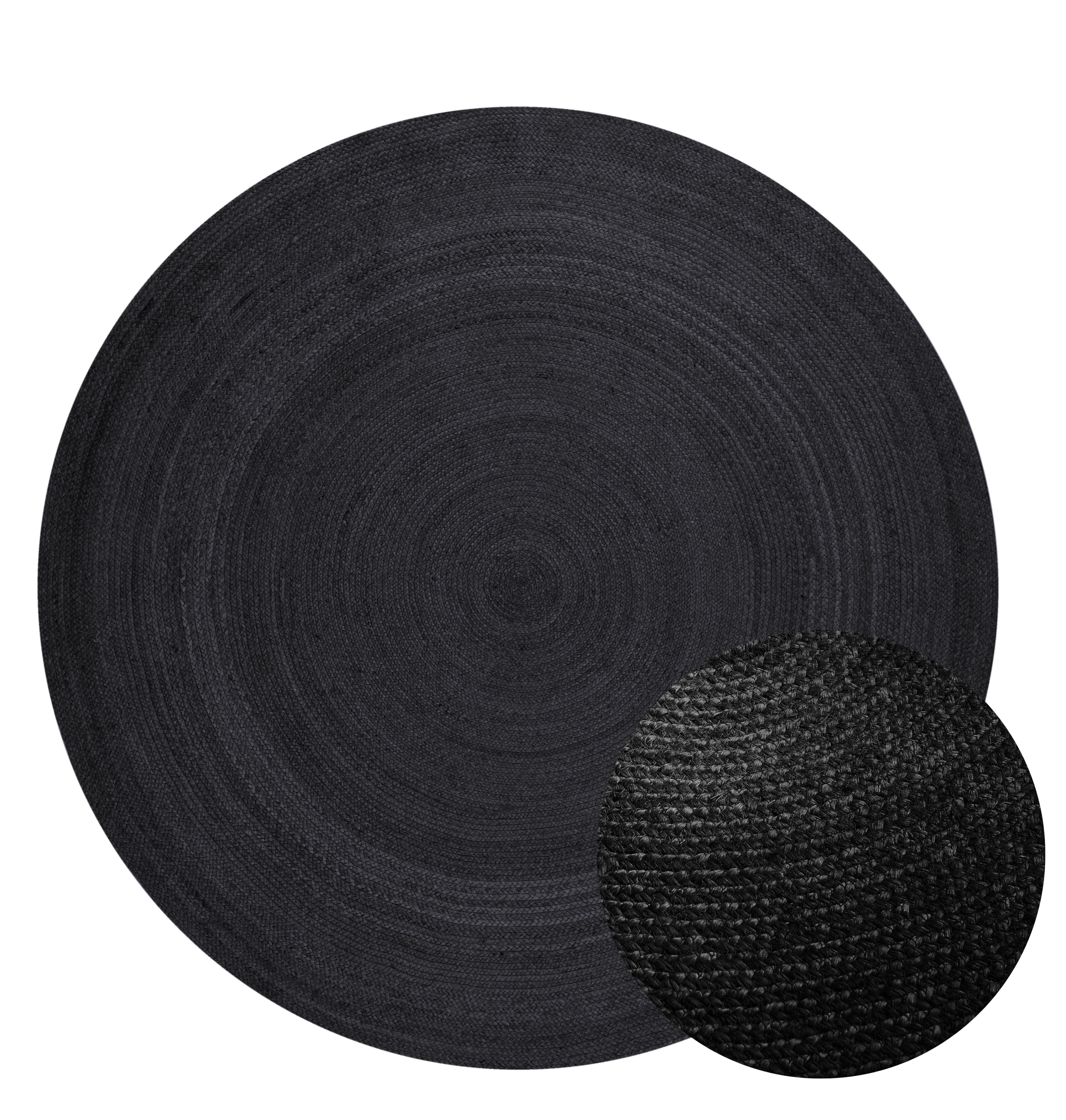 JUTEFLÄTAD MATTA RANGPUR RUND, SVART