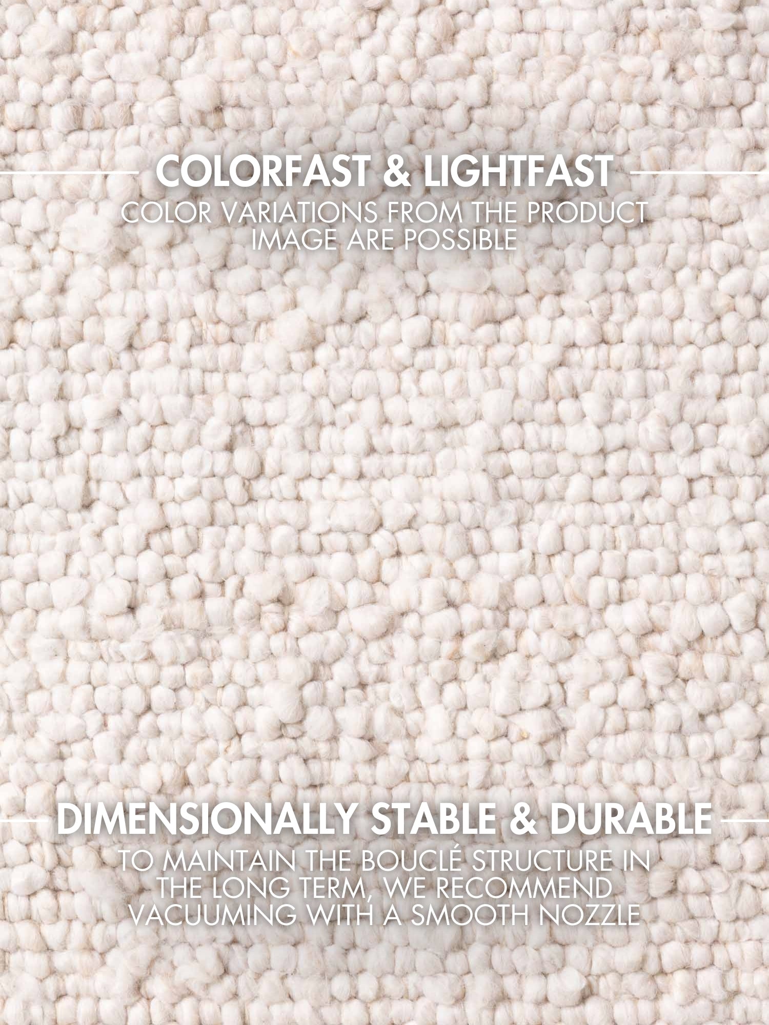 För att säkerställa mattans hållbarhet rekommenderas en skonsam dammsugning med ett slätt munstycke utan borste.