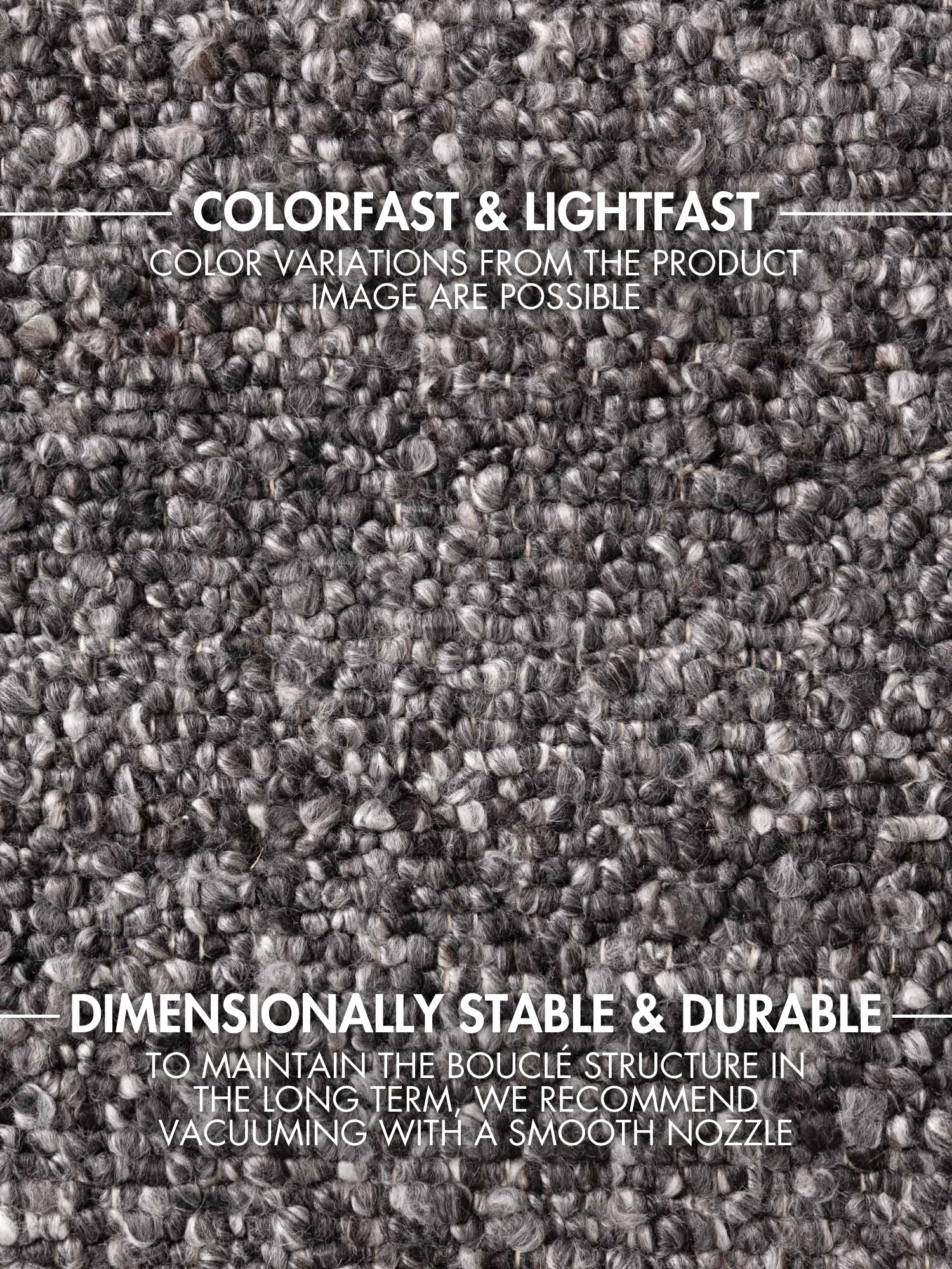 För att säkerställa mattans hållbarhet rekommenderas en skonsam dammsugning med ett slätt munstycke utan borste.