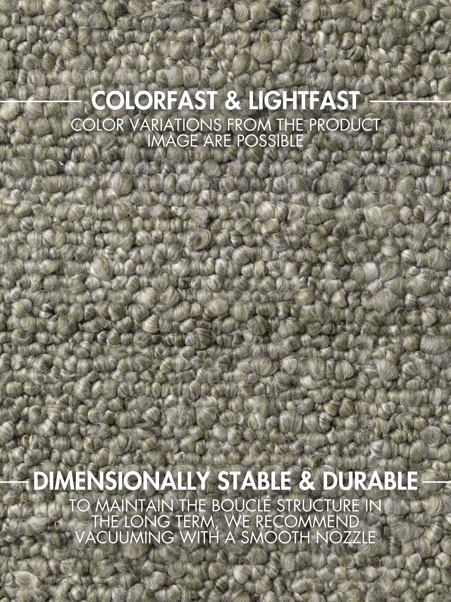 För att säkerställa mattans hållbarhet rekommenderas en skonsam dammsugning med ett slätt munstycke utan borste.