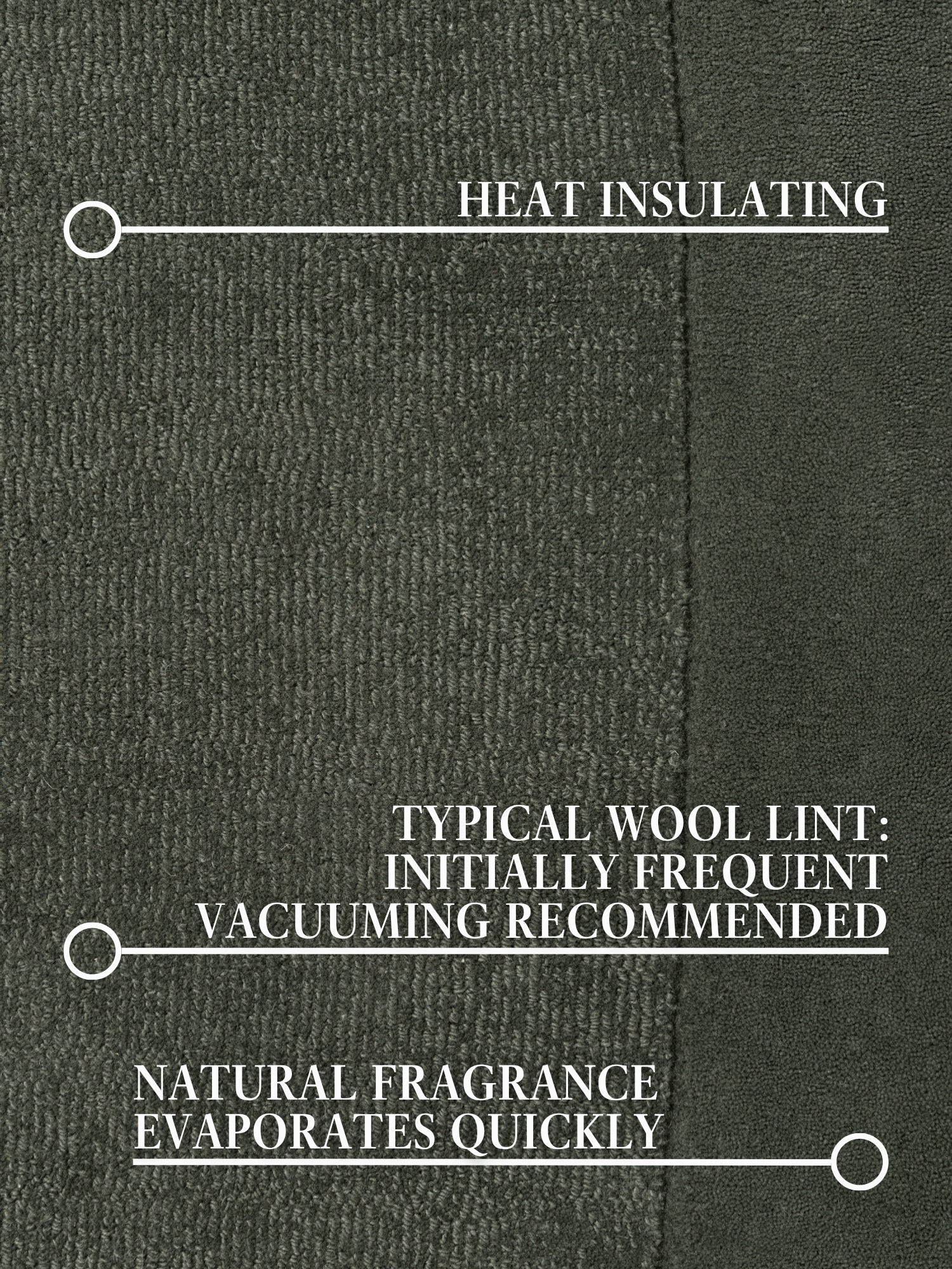 Inledningsvis kan det finnas lösa fibrer, vilket är normalt för nya ullmattor. Regelbunden dammsugning minskar löshet över tid och hjälper till att bibehålla mattans vackra utseende.