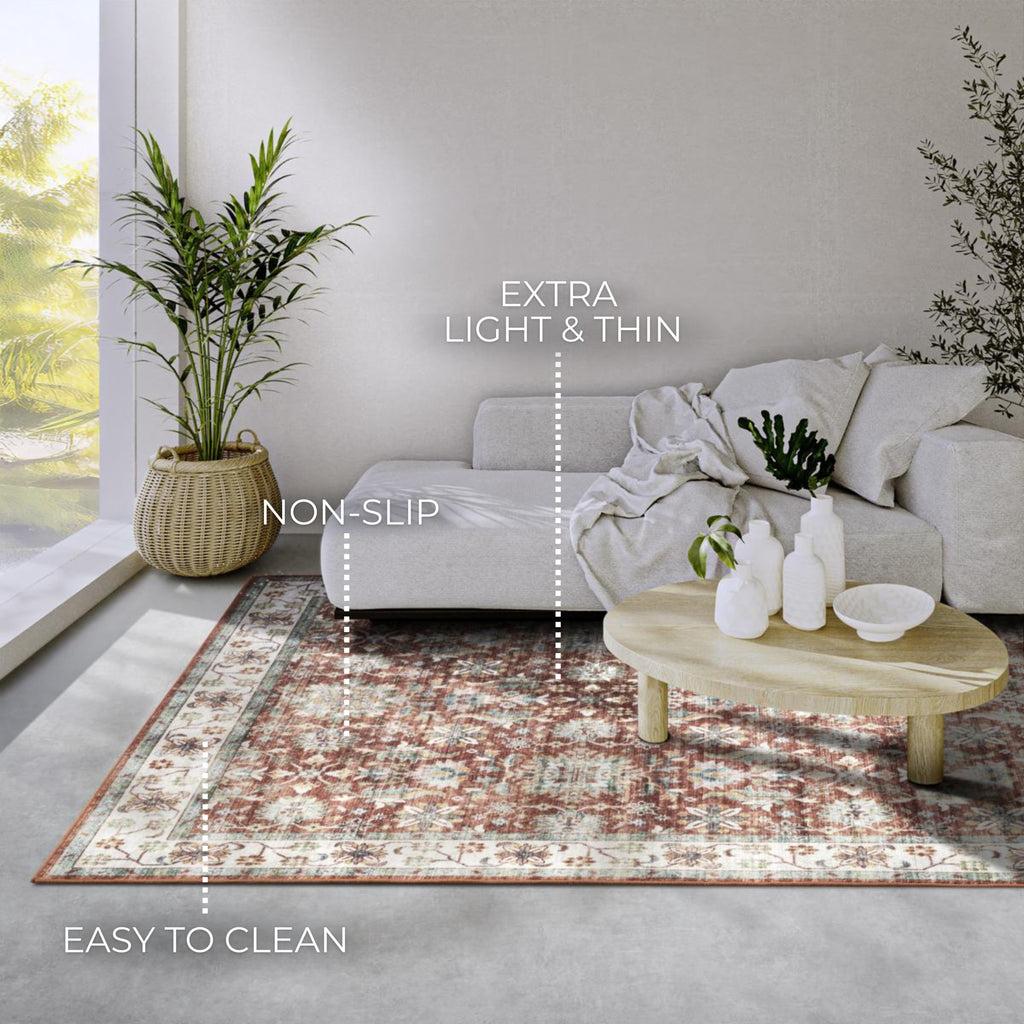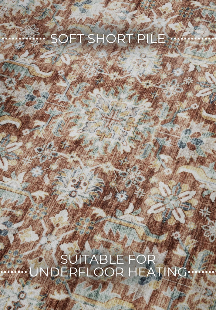 Elle Decoration Imagination kortluggig matta Saveh i rött och krämfärgat är ett elegant och iögonfallande tillskott till alla heminredningar. Mattan har en kort lugg, vilket ger en slät och bekväm yta som är både praktisk och lätt att underhålla, vilket gör den idealisk för vardagsbruk.