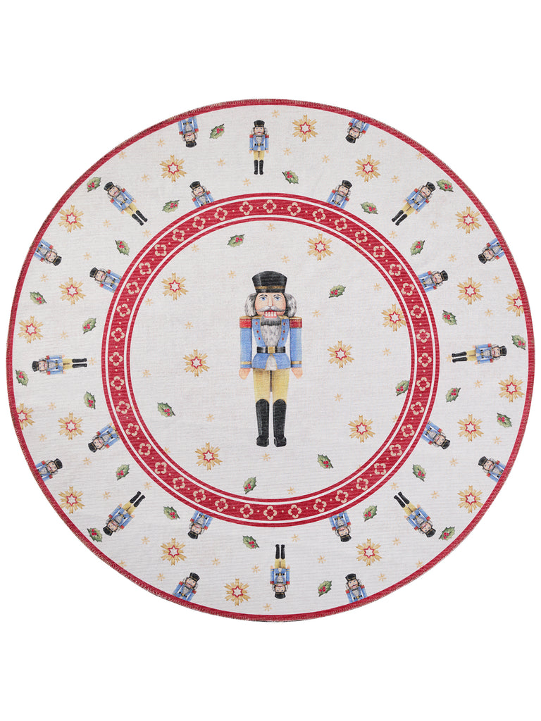 Denna julmatta är tillverkad av mjuka och slitstarka polyesterfibrer, vilket ger den en lyxig, sammetslen yta och gör den enkel att rengöra för hand. Den halkfria PVC-strukturen på baksidan säkerställer att mattan håller sig på plats – perfekt för livliga juldagar och lek under granen.