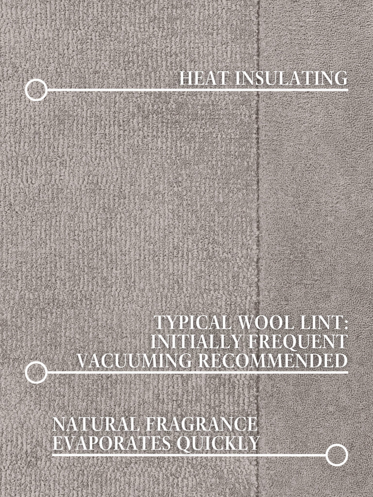 Inledningsvis kan det finnas lösa fibrer, vilket är normalt för nya ullmattor. Regelbunden dammsugning minskar löshet över tid och hjälper till att bibehålla mattans vackra utseende.