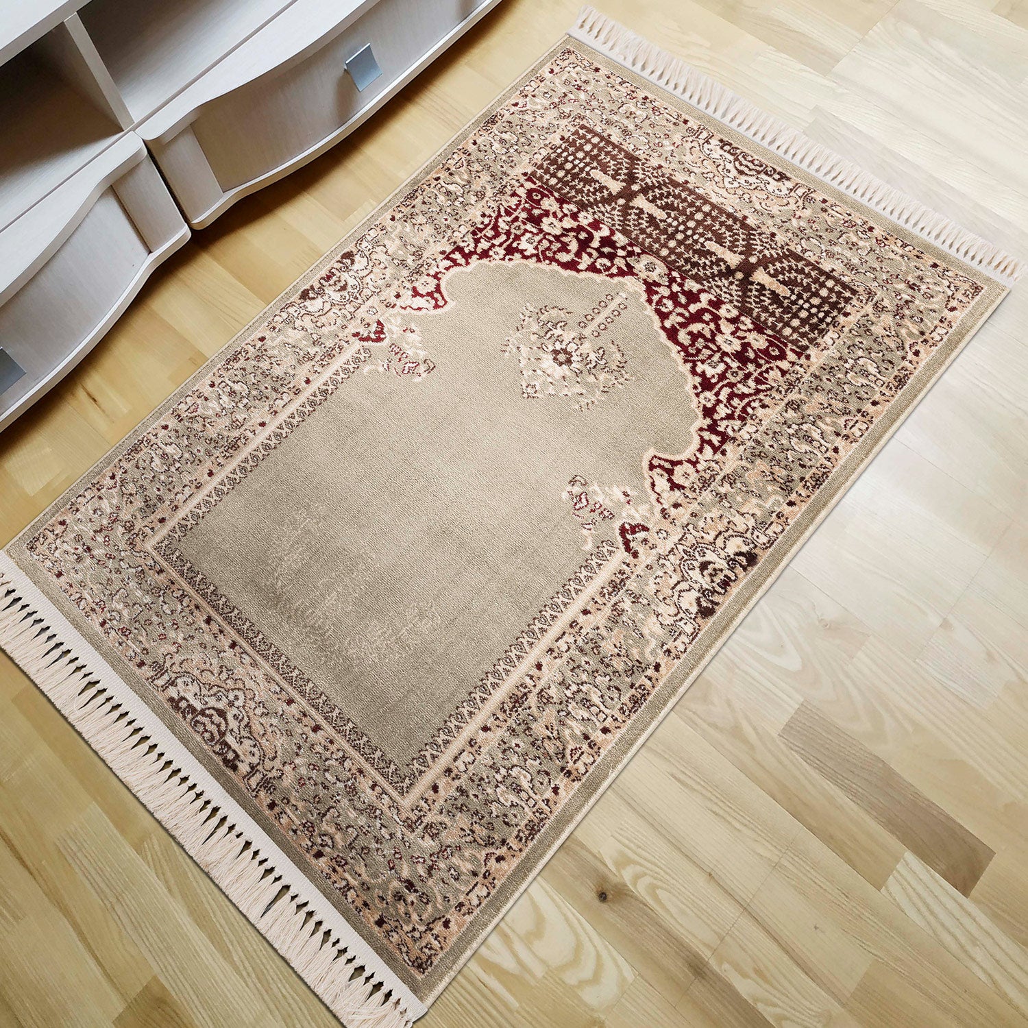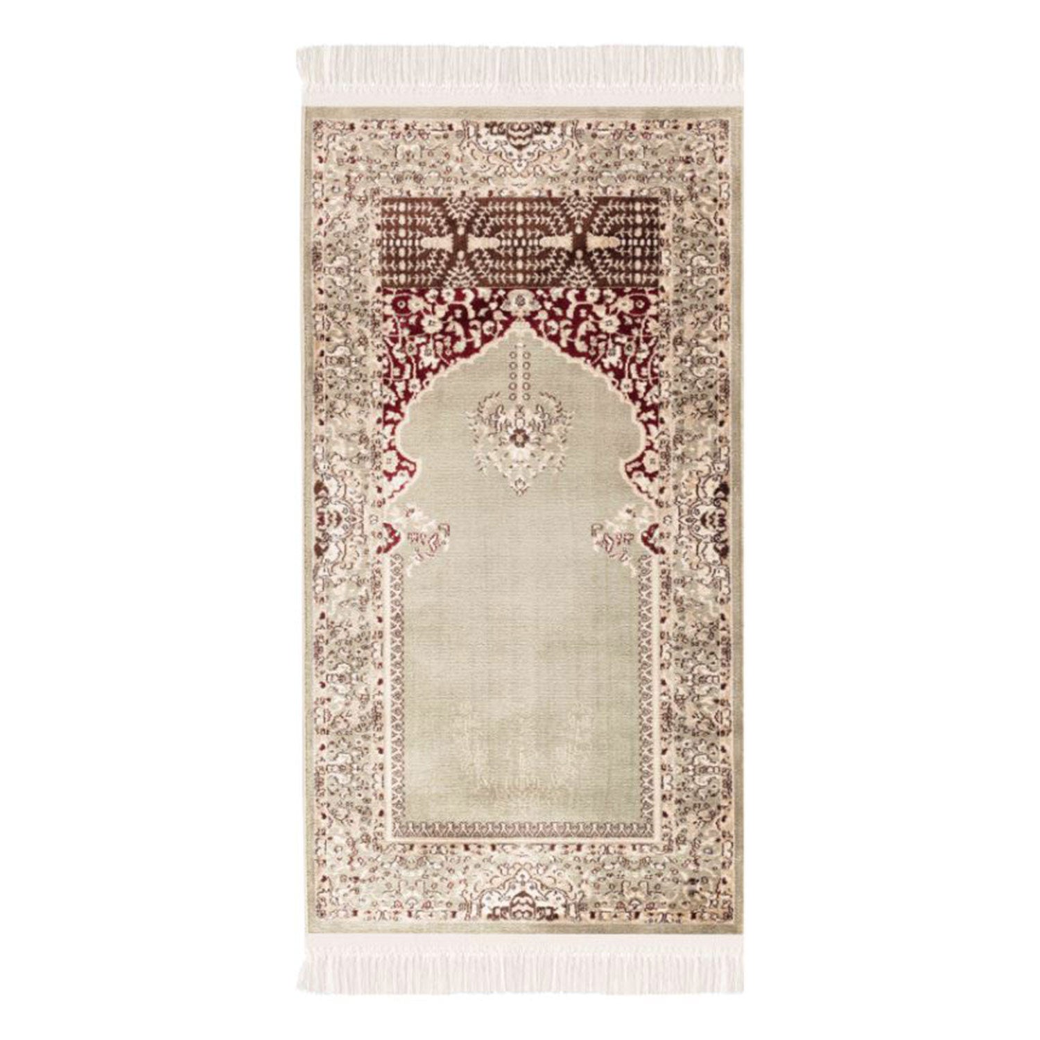Den klassiska bönemattan med mönster och detaljerade utsmyckningar skapar tidlös elegans i alla bostadsutrymmen. Den utsmyckade designen kompletteras av fina fransar i ändarna och ett briljant färgspel. De silkeslena fibrerna reflekterar ljuset och ger ett imponerande uttryck, där ytan – beroende på betraktningsvinkel – ändrar färg och intensitet.