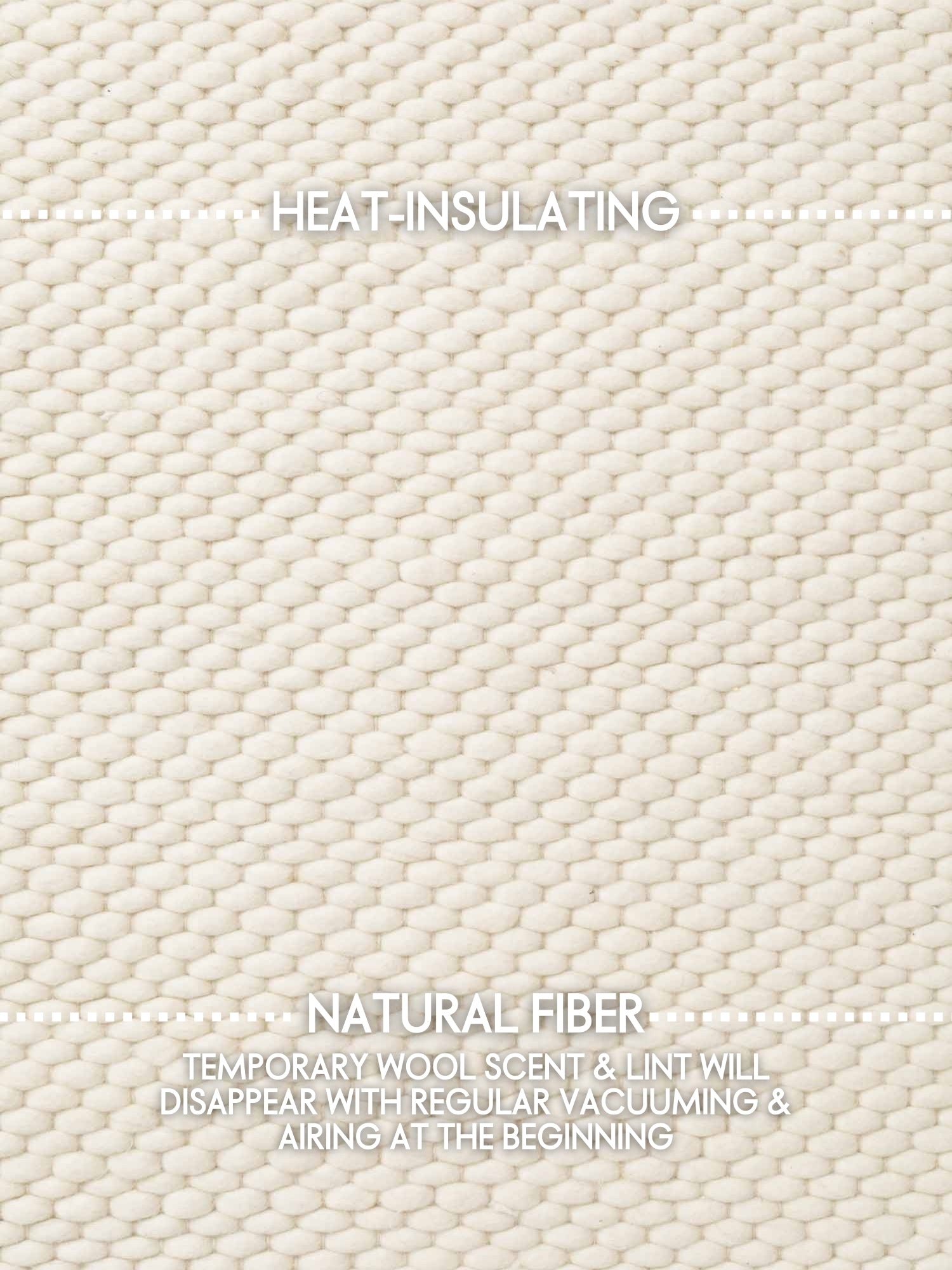 Det naturliga färgschemat och den pärlliknande texturen ger rummet en lugn och mysig atmosfär. Mindre färgvariationer kan förekomma och betonar mattans autentiska och livfulla uttryck. Liksom med många ullmattor kan en lätt naturlig doft finnas när mattan packas upp, vilken kommer att blekna med tiden.