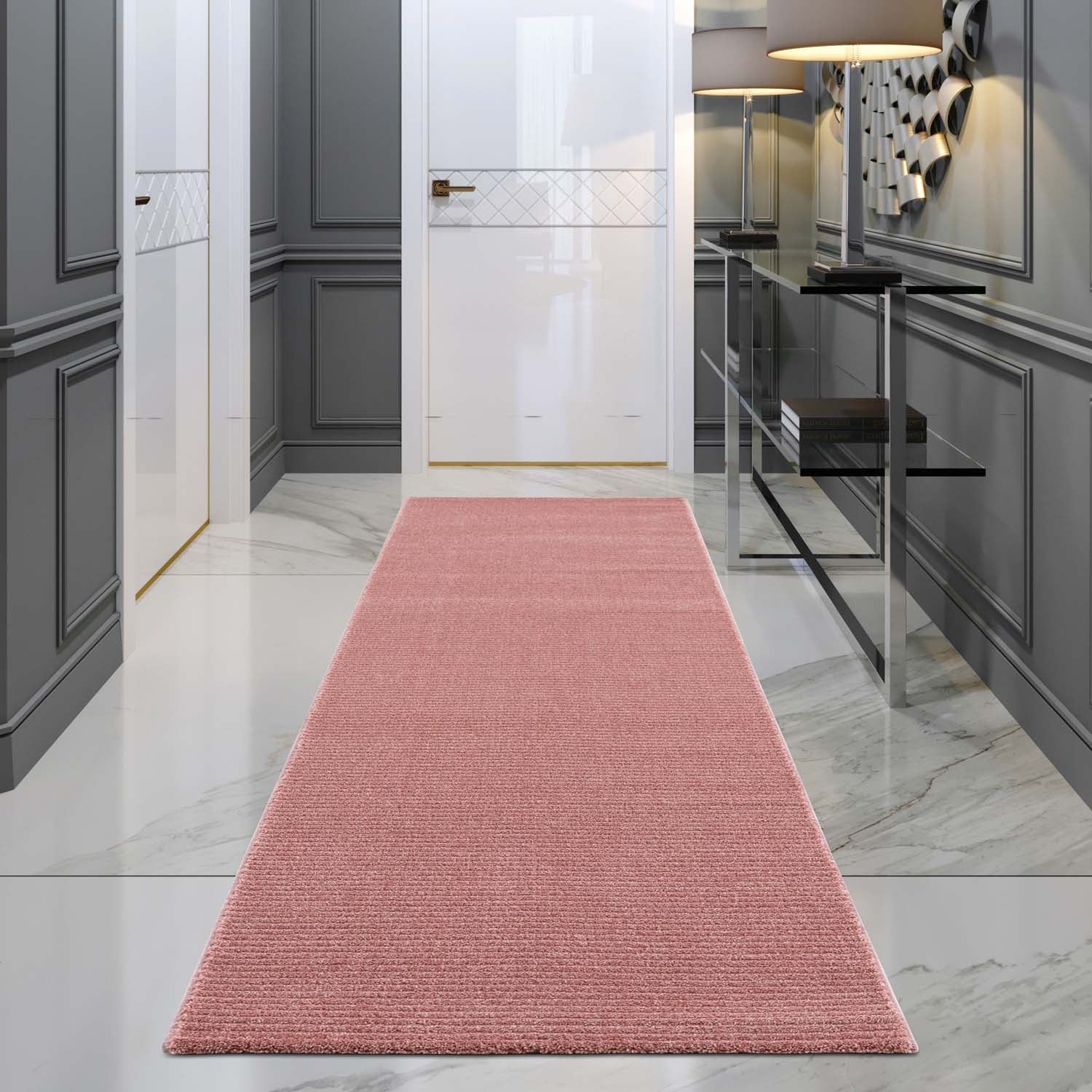 Mattorna är tillverkade med cut & loop-metoden, vilket skapar ett högt-lågt mönster som ger mattorna ett elegant utseende.