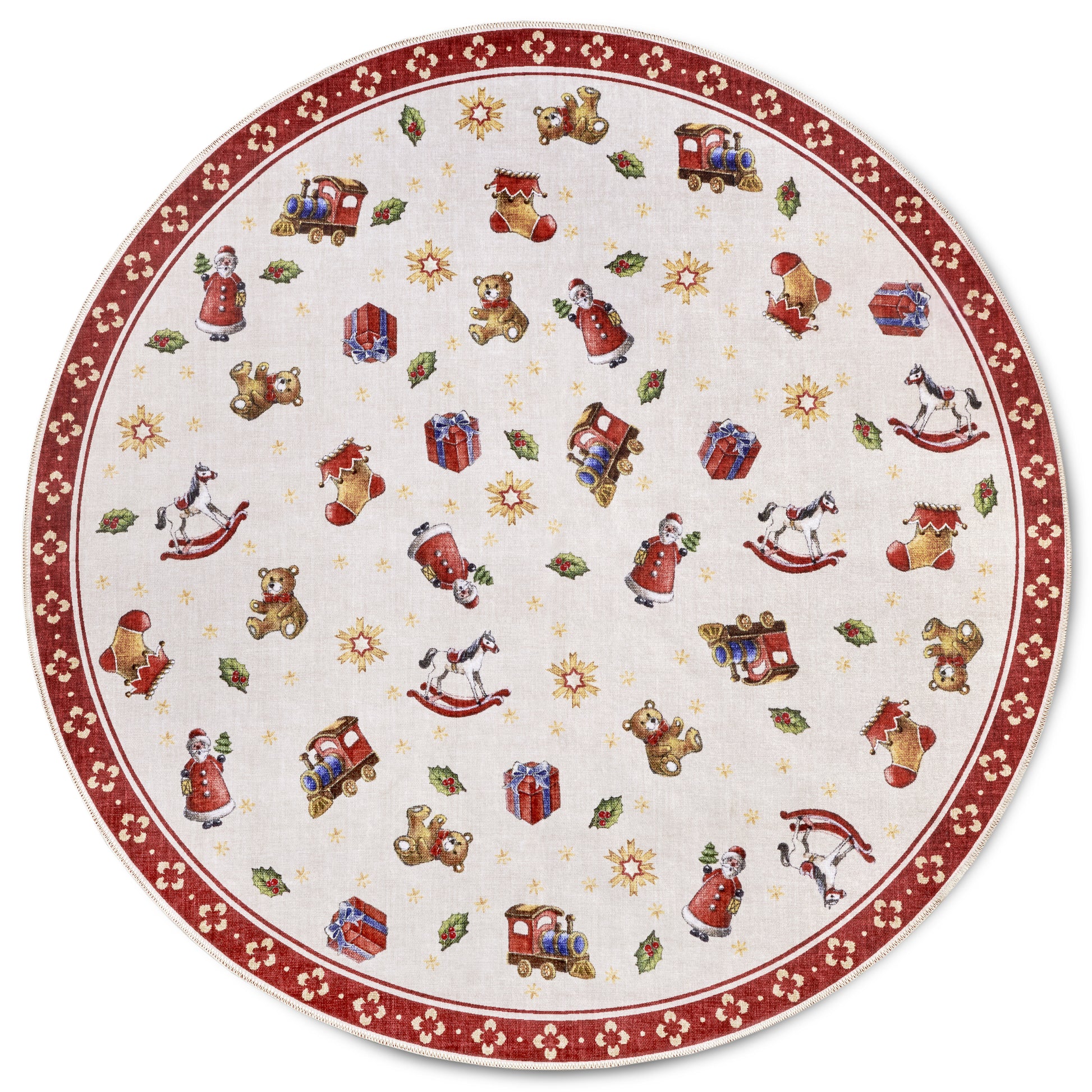 Villeroy & Bochs Toy's Delight -kollektion är en festlig serie produkter designade för att fira julen med charm och elegans. En Toy's Delight-julgransmatta är en dekorativ matta som placeras under julgranen. Den har ofta nostalgiska julmotiv som leksaker, snöflingor och juldekorationer, i linje med kollektionens traditionella och mysiga uttryck.