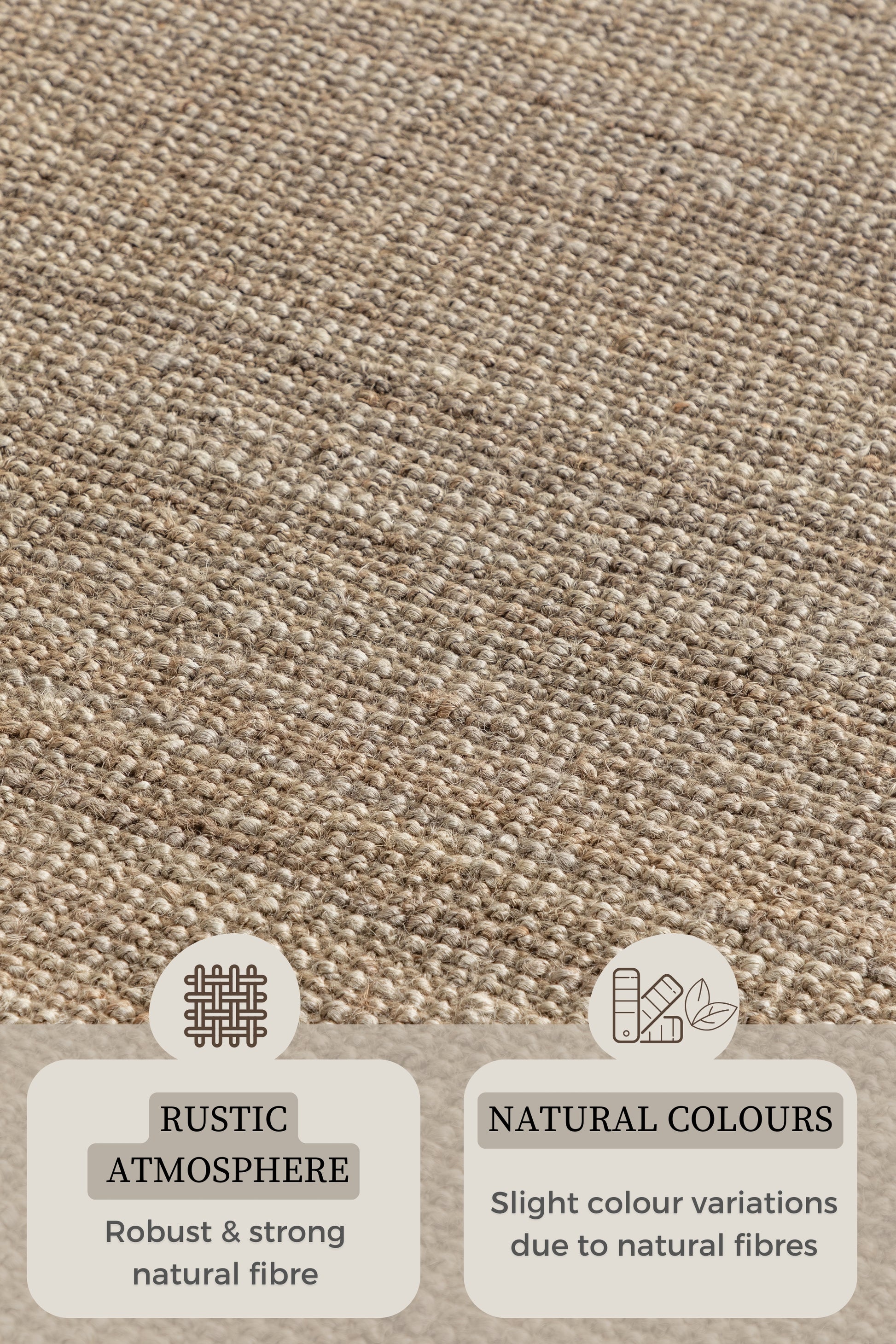 Bouclé-jutemattan erbjuder en blandning av naturlig elegans och modern charm. Mattan är tillverkad av högkvalitativa jutefibrer och har en distinkt boucléstruktur som ger djup och karaktär till alla utrymmen. De naturliga grå och bruna nyanserna framkallar en känsla av jordnära och värme, vilket gör den till ett mångsidigt tillbehör för en mängd olika inredningsstilar. Oavsett om den placeras i vardagsrummet, sovrummet eller matplatsen, förhöjer denna matta enkelt atmosfären med sin tidlösa charm. Dess slitstarka konstruktion garanterar långvarig kvalitet, medan dess subtila färger kompletterar ett brett utbud av färgscheman och inredningsteman. Ge ditt hem en touch av rustik sofistikering med Bouclé-jutemattan.