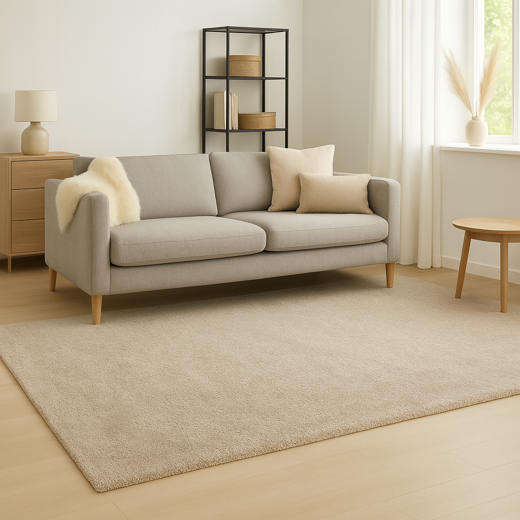 Tæppets ensartede, bløde overflade giver et elegant og harmonisk udtryk, der passer smukt ind i både stue, soveværelse, entré og kontor.