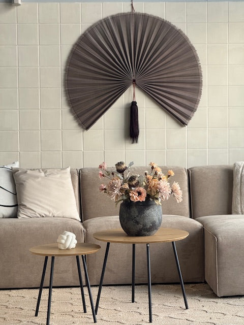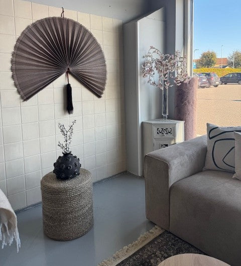 Ge ditt hem ett unikt och naturligt utseende med vår handgjorda Sensu-väggfläkt i bambu. Fläkten är tillverkad av vackert vävd bambu och designad för att ge värme, lugn och karaktär till alla boendestilar. Det lätta och organiska utseendet gör den till en elegant väggdekoration som passar både moderna, minimalistiska och nordiska hem. Finns i 3 olika färger och 2 olika storlekar.