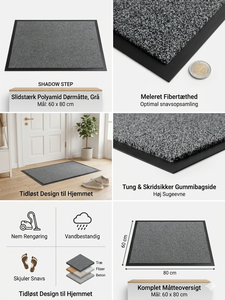 Hold dit hjem rent med stil. Shadow Step er en professionel dørmåtte i topkvalitet, designet til at håndtere hverdagens trafik i den travle entré. Den kombinerer maksimal sugeevne med et elegant, moderne design.