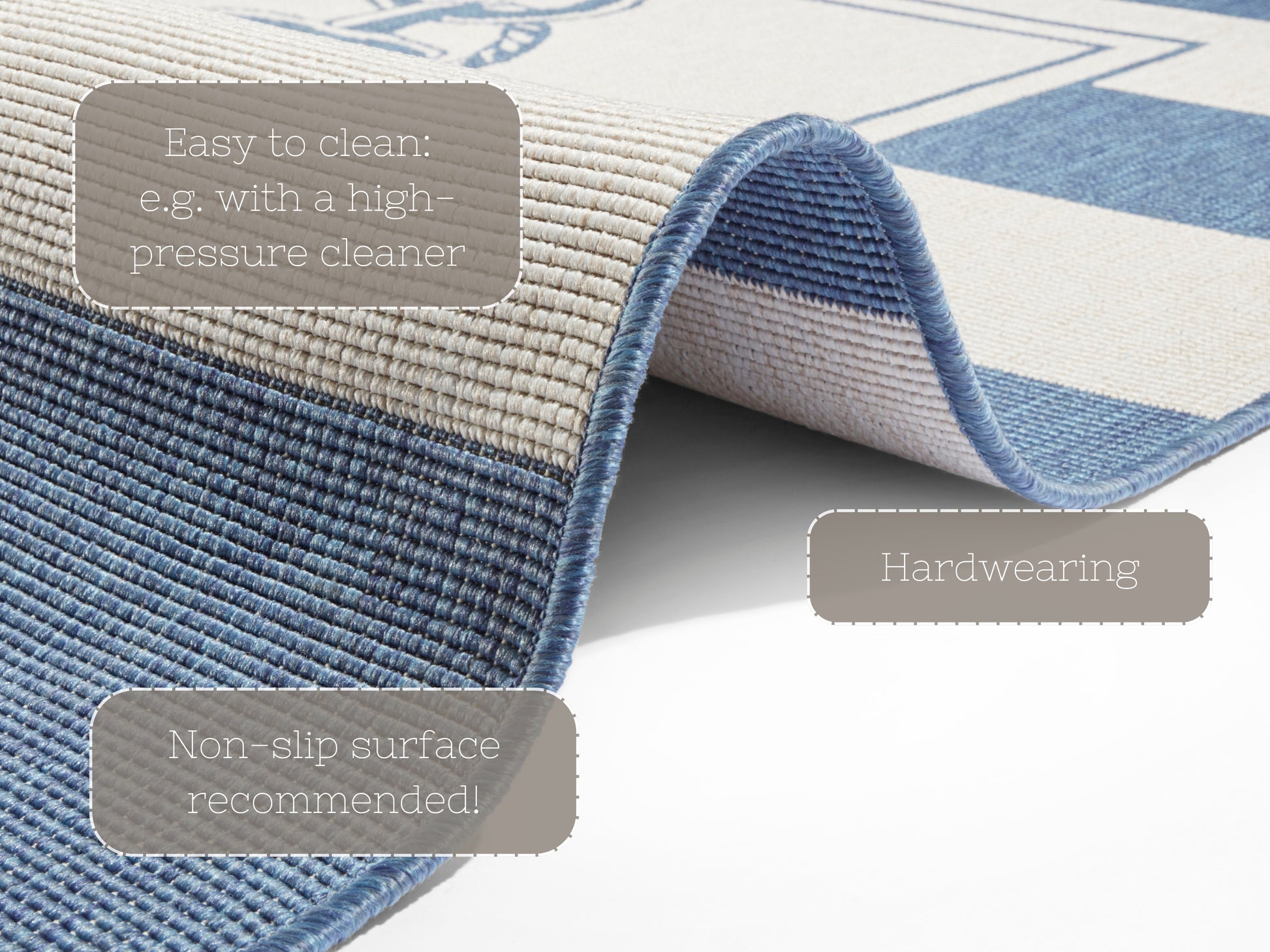 Den vändbara mattan Twin är ett mångsidigt val för alla inredningar, lämplig för både inomhus- och utomhusbruk. Denna slättvävda matta, tillverkad av 100 % polypropen, överraskar med sin vändbara design, vilket ger flexibilitet och funktionalitet till din heminredning. Den vändbara funktionen ger inte bara variation i utseende, utan förlänger också mattans livslängd.