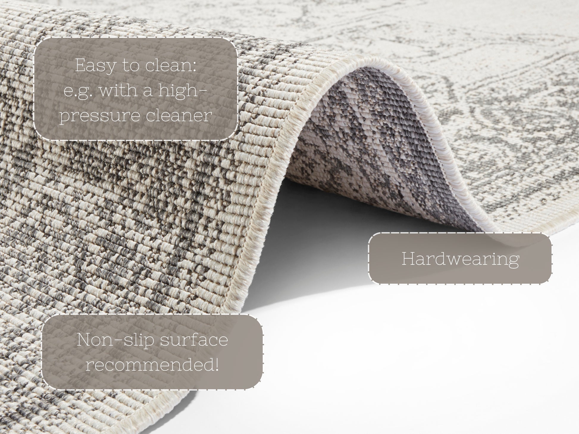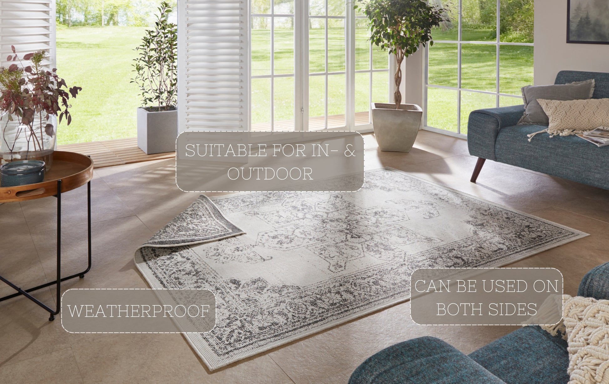 Den vändbara mattan Twin är ett mångsidigt val för alla inredningar, lämplig för både inomhus- och utomhusbruk. Denna slättvävda matta, tillverkad av 100 % polypropen, överraskar med sin vändbara design, vilket ger flexibilitet och funktionalitet till din heminredning. Den vändbara funktionen ger inte bara variation i utseende, utan förlänger också mattans livslängd.