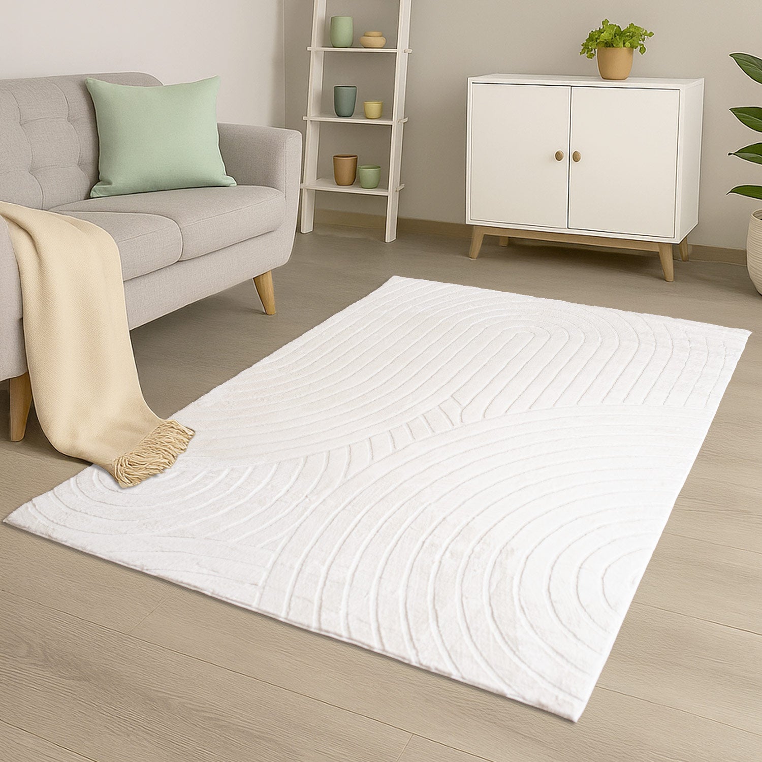 Vågig mjuk modern pälsmatta, 501 Elfenbensvit